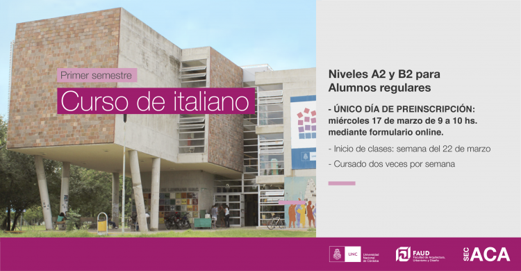 La Dirección de Idiomas con Fines Académicos (DIFA) de la Facultad de Lenguas de la UNC dictará durante el primer semestre los niveles A2 y B2 del Idioma Italiano para estudiantes regulares de la FAUD.