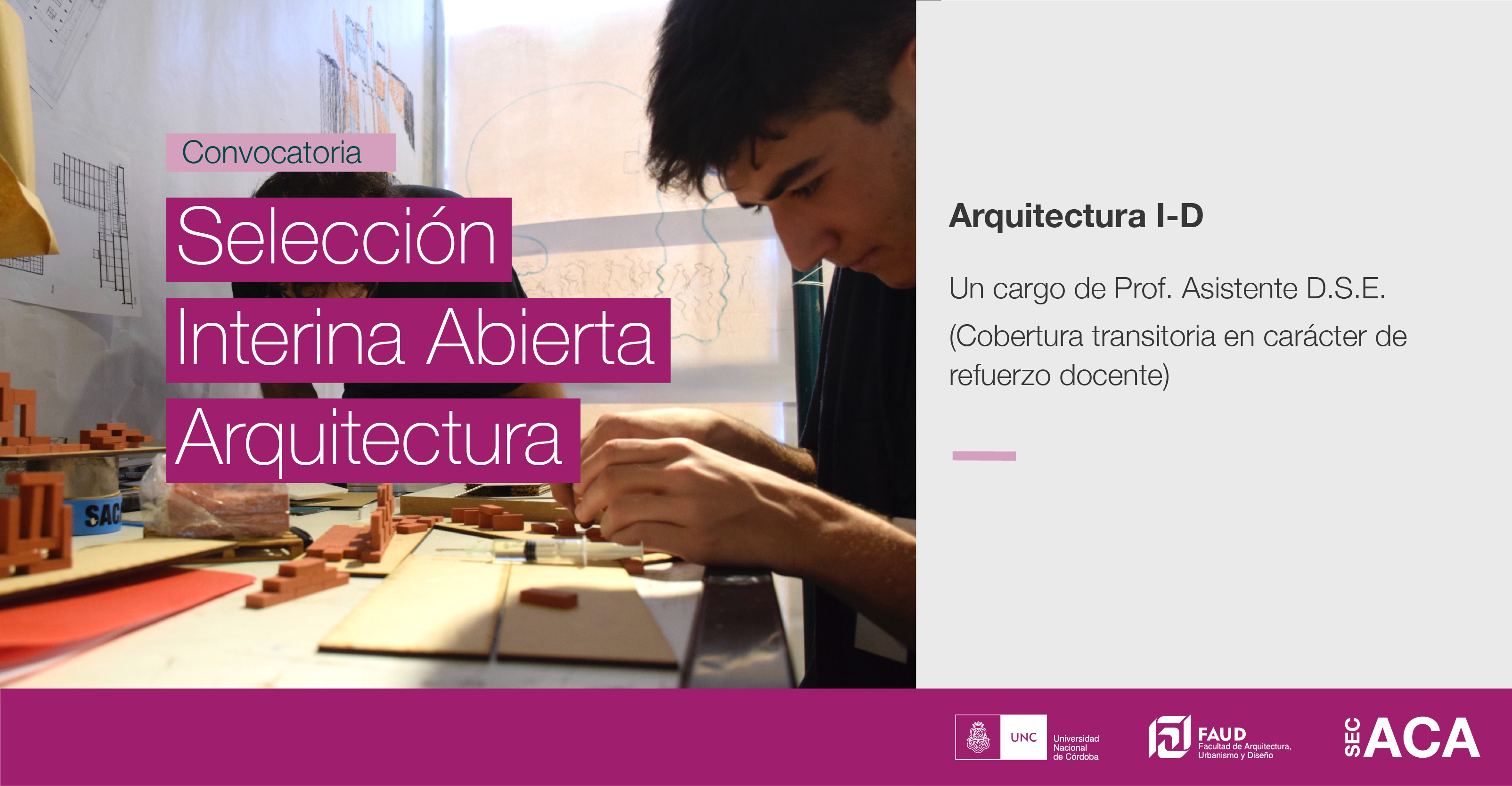 Secretaría Académica informa que se encuentran abierto el siguiente llamado a Selección Interina Abierta para la carrera de Arquitectura: