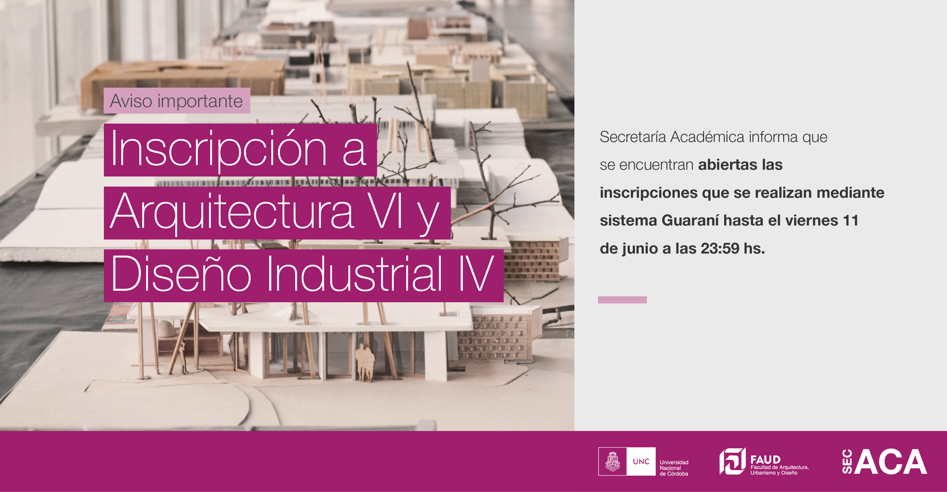 Secretaría Académica informa que se encuentran abiertas las inscripciones para las asignaturas Arquitectura VI y Diseño Industrial IV.