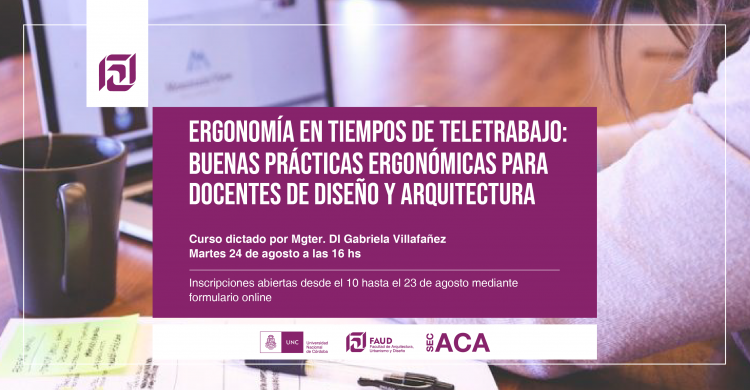 Secretaría Académica en conjunto con la Asesoría Pedagógica informan que se encuentran abiertas las inscripciones para el curso Ergonomía en tiempos de Teletrabajo: Buenas prácticas ergonómicas para docentes de Diseño Industrial y Arquitectura.