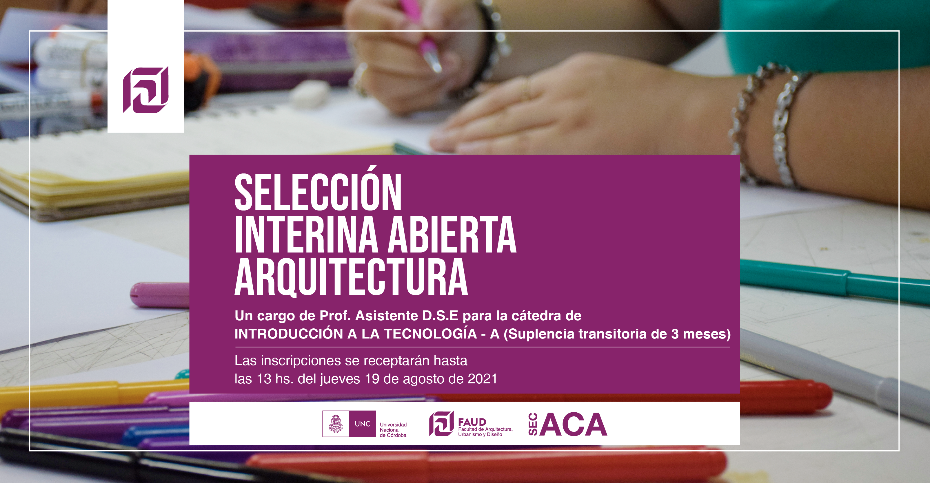 Secretaría Académica informa que se encuentran abierto el siguiente llamado a Selección Interina Abierta para la carrera de Arquitectura:
