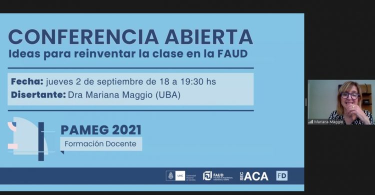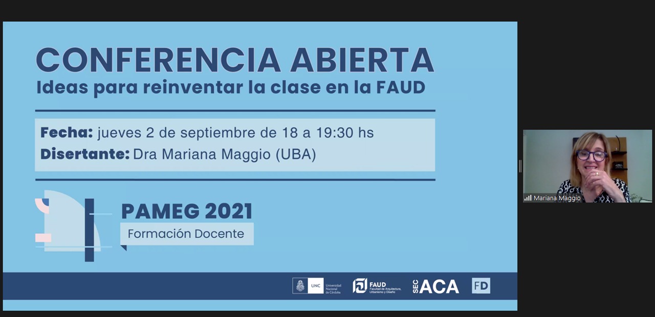 El pasado jueves 2 de septiembre Mariana Maggio, Doctora en Educación, Magister y Especialista en Didáctica, y también Licenciada en Ciencias de la Educación por la UBA, dictó esta conferencia como parte de las actividades que se realizan desde el Programa de Formación Docente PAMEG 2021.