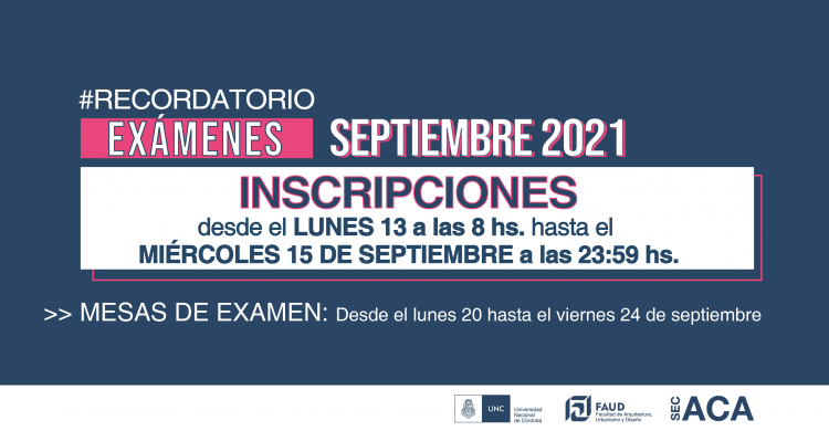 Recordamos que el próximo lunes 13 de septiembre comienzan las inscripciones a exámenes para el TURNO DE SEPTIEMBRE