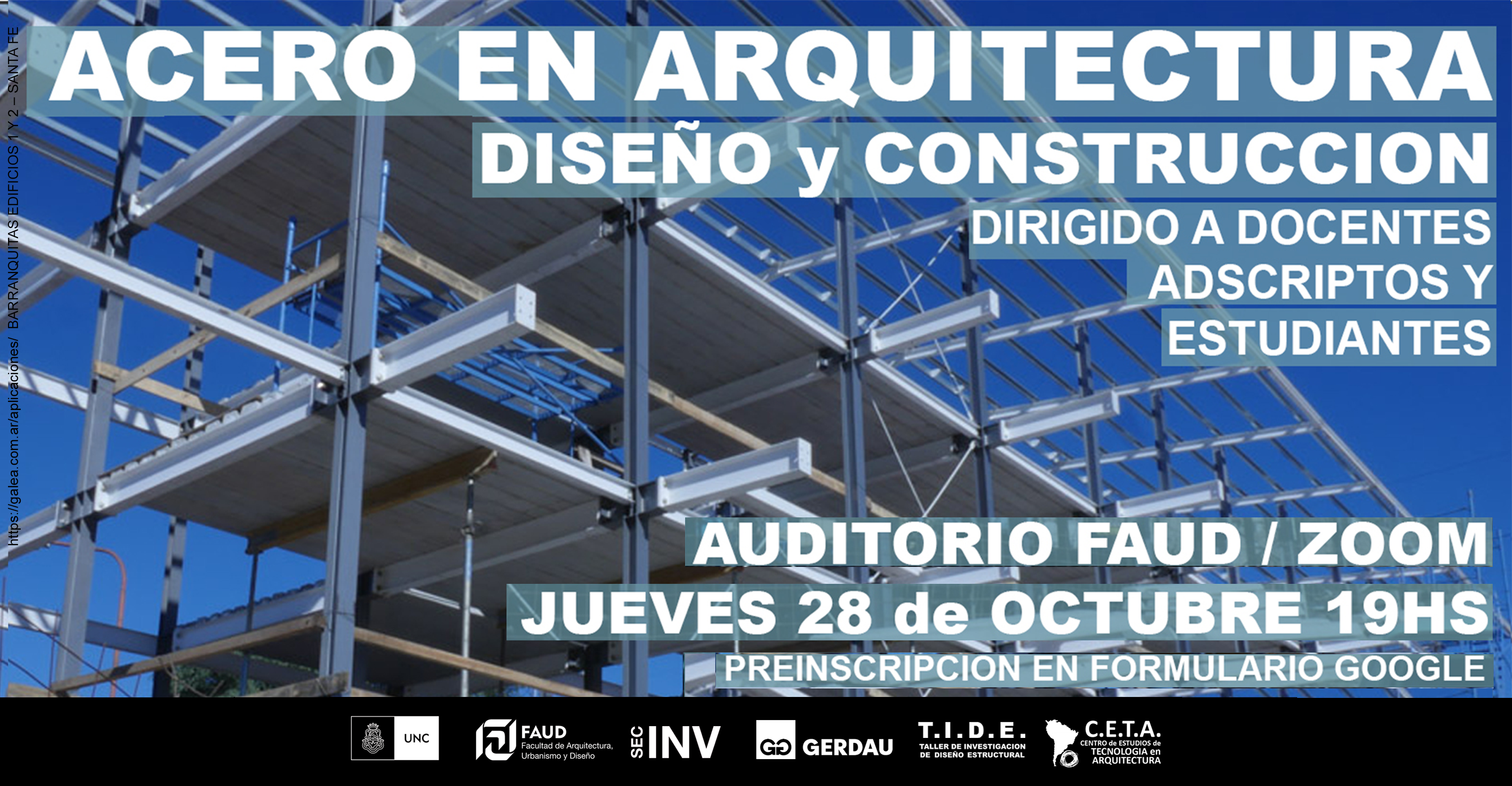 El Taller de Investigación de Diseño Estructural (TIDE) y el Centro de Estudios de Tecnología de Arquitectura (CETA) invitan a la presentación “ACERO EN ARQUITECTURA. DISEÑO Y CONSTRUCCIÓN”
