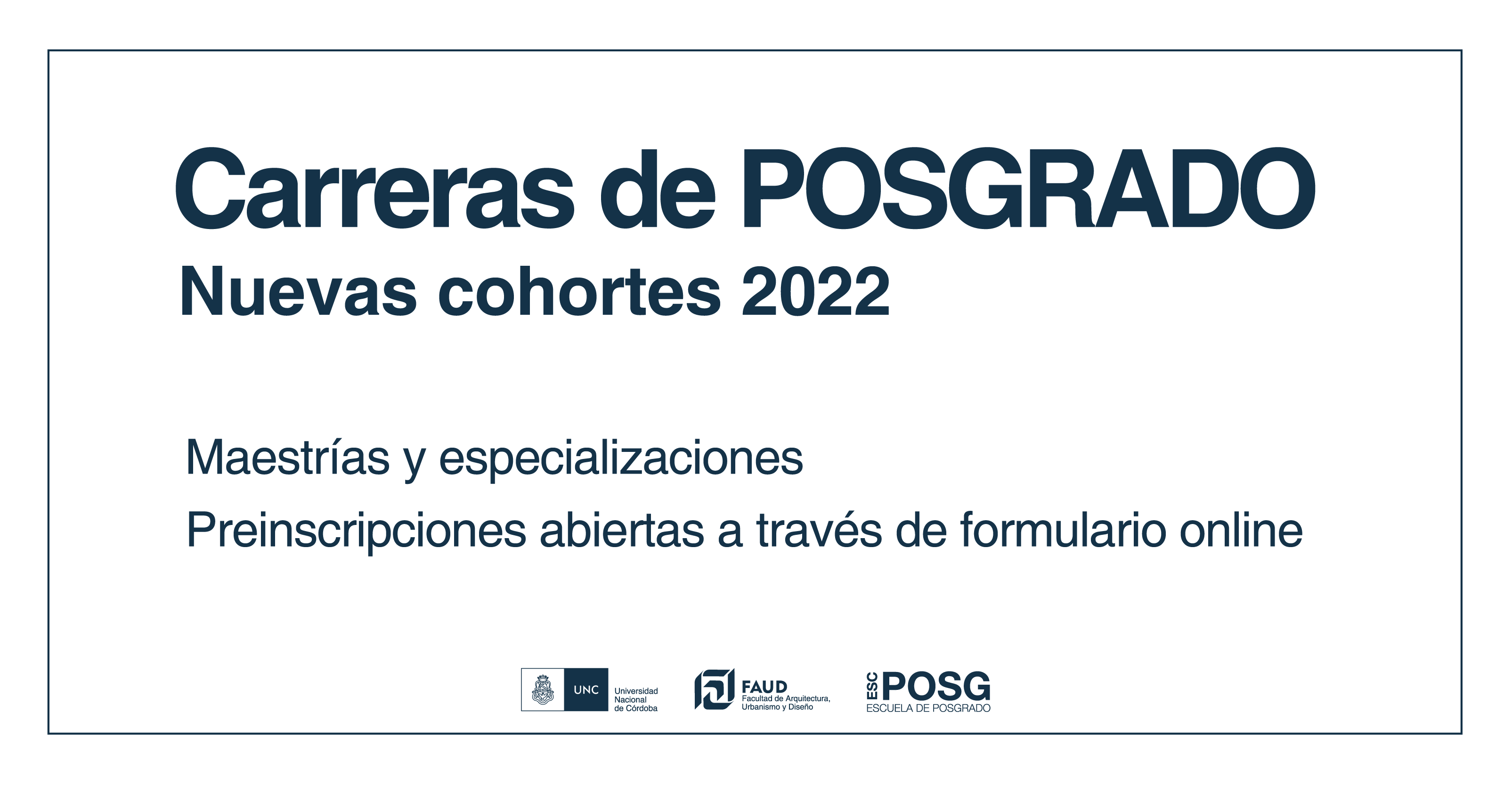 La Escuela de Posgrado informa que se abrieron las pre-inscripciones para las nuevas cohortes 2022 de las carreras de posgrado FAUD.