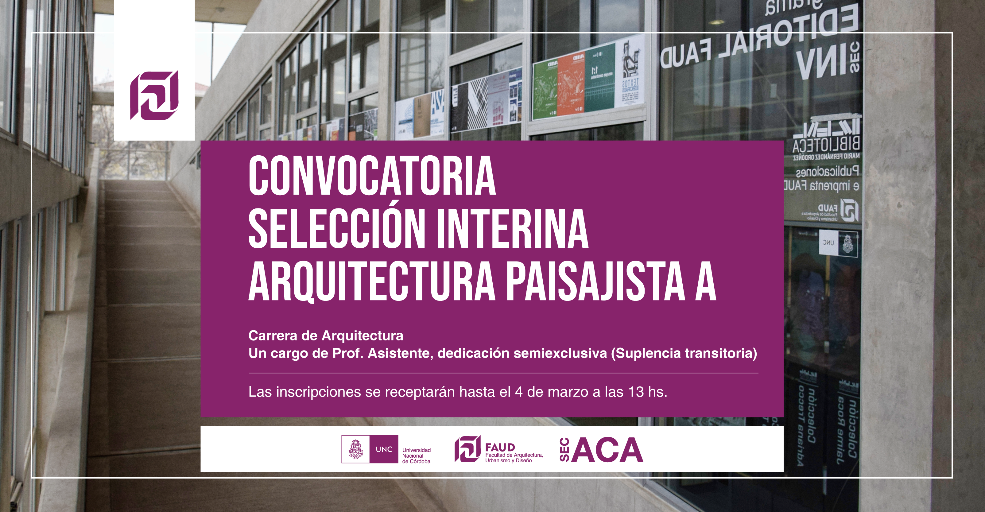 Secretaría Académica informa que se encuentra abierto el llamado de Selección Interina abierta para la cátedra ARQUITECTURA PAISAJISTA A.
