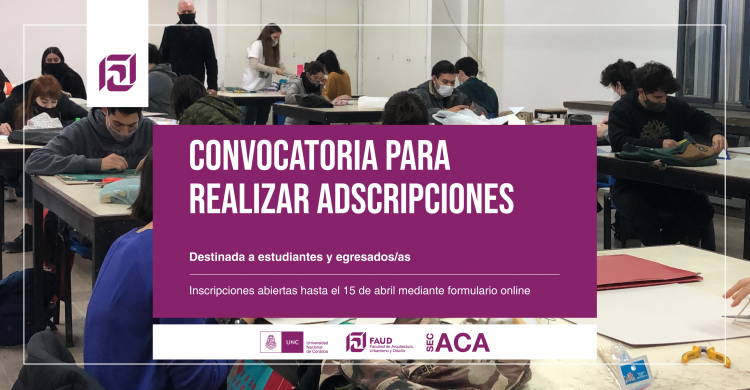 Secretaría Académica informa que se encuentra abierta la convocatoria de estudiantes y egresados/as para realizar adscripciones en las asignaturas de Arquitectura y Diseño Industrial.