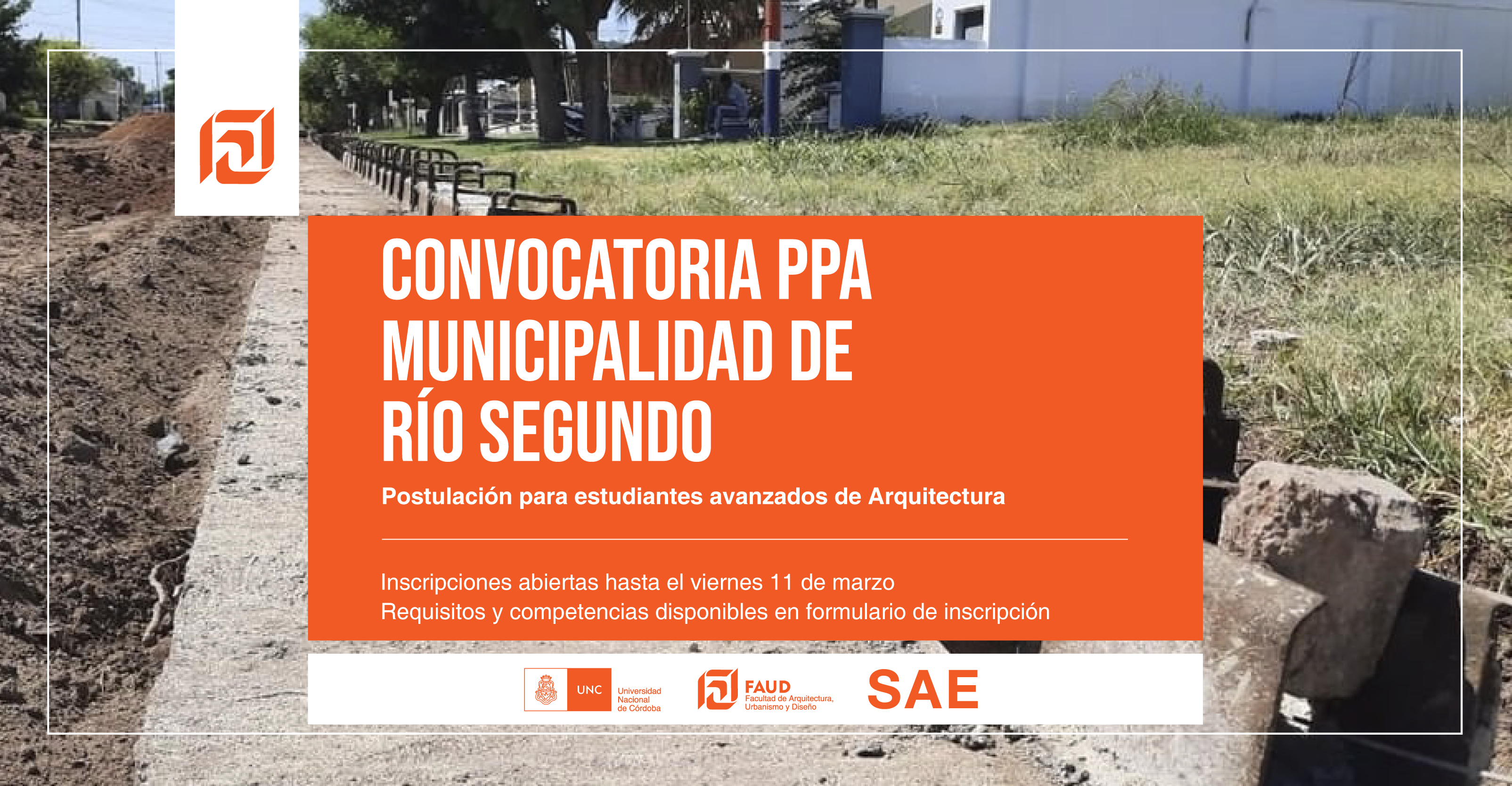 La Secretaría de Asuntos Estudiantiles informa que se encuentra abierta la convocatoria para realizar la Práctica Profesional Asistida en la Secretaría de Obras, Servicios Públicos y Medio Ambiente de la Municipalidad de Río Segundo.