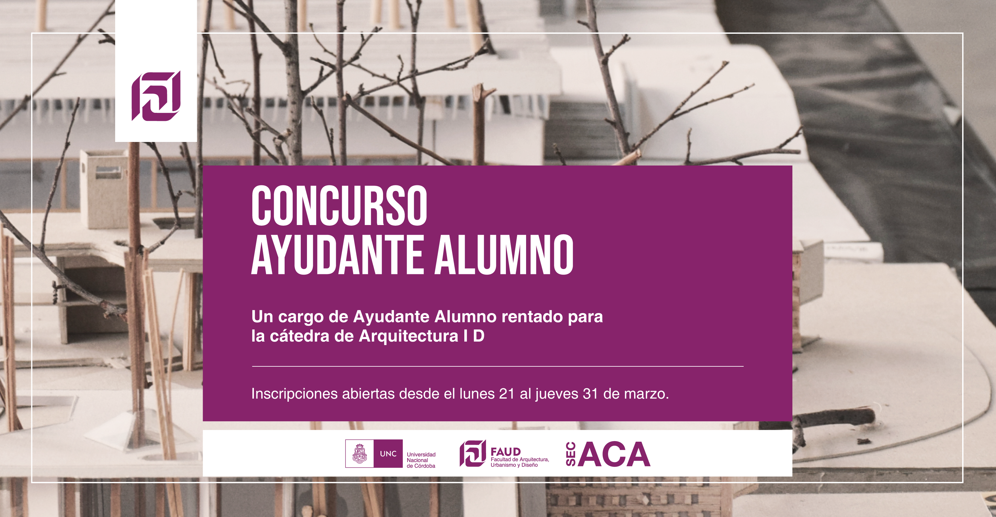 Secretaría Académica informa que se abre la convocatoria de Ayudante Alumno rentado para la cátedra Arquitectura I D.