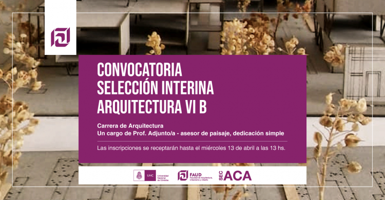 Secretaría Académica informa que está abierto el siguiente llamado de Selección Interina abierta para la cátedra Arquitectura VI B: