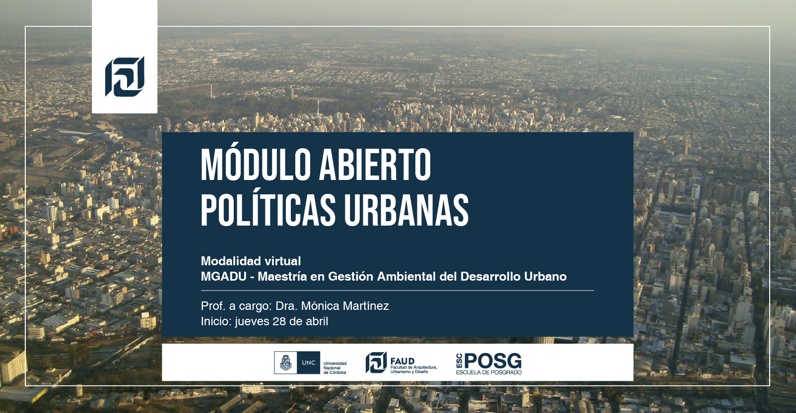 La Escuela de Posgrado FAUD invita a participar del módulo abierto "Políticas urbanas", de la Maestría en Gestión Ambiental del Desarrollo Urbano (MGADU)
