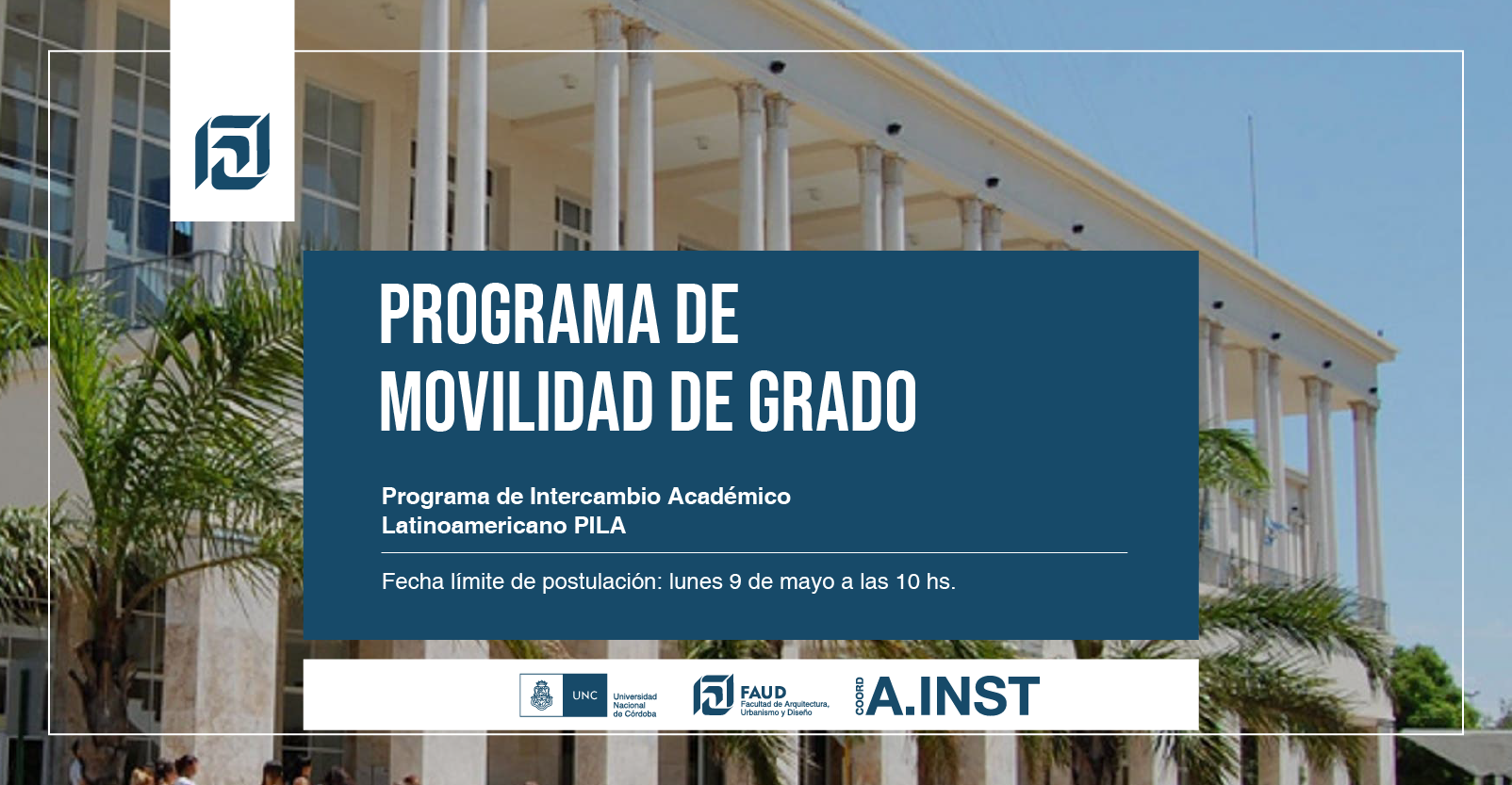 La Coordinación de Asuntos Institucionales informa que está abierta la convocatoria del Programa de Intercambio Académico Latinoamericano PILA, destinada a estudiantes de grado que deseen realizar una estancia académica en las siguientes universidades: