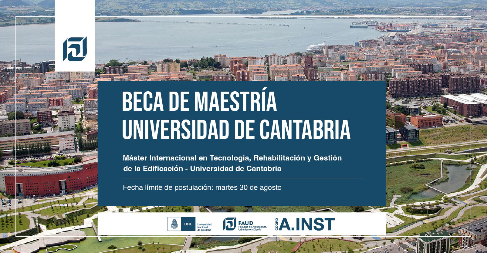 La Coordinación de Asuntos Institucionales informa que está abierta la convocatoria para aplicar a becas para realizar el Máster Internacional en “Tecnología, Rehabilitación y Gestión de la Edificación” que se dicta en la Universidad de Cantabria, Santander, España.