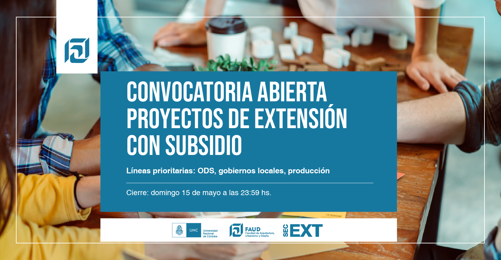 La Secretaría de Extensión de la FAUD informa que se encuentra abierta la convocatoria para Proyectos de Extensión con subsidio.