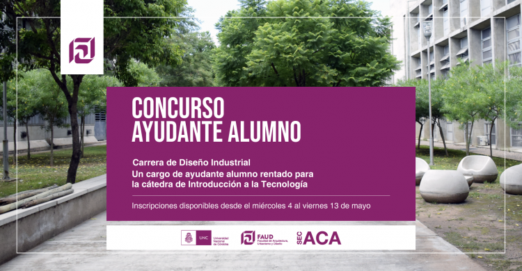 Secretaría Académica informa que se abre la convocatoria para cubrir un cargo de Ayudante Alumno en la cátedra Introducción a la Tecnología de Diseño Industrial.