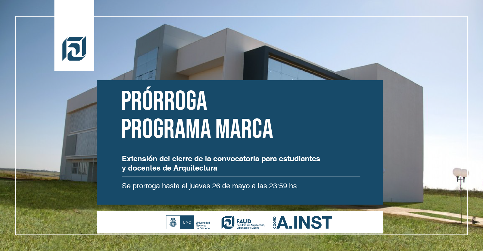 La Coordinación de Asuntos Institucionales informa que se prorroga hasta el jueves 26 de mayo la fecha de cierre del Programa de movilidad académica regional MARCA destinado a estudiantes y docentes de Arquitectura.