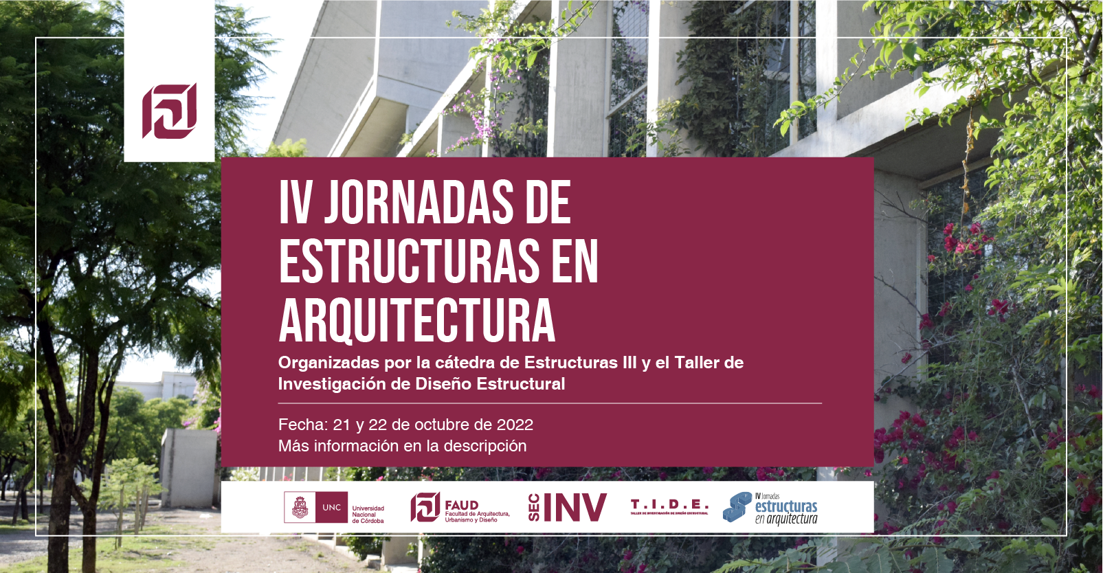 En el marco de la conmemoración del 30° aniversario del Taller de Investigación de Diseño Estructural (TIDE), la Secretaría de Investigación invita a participar de las IV Jornadas de Estructuras en Arquitectura a docentes, investigadores/as, extensionistas y estudiantes de la FAUD.