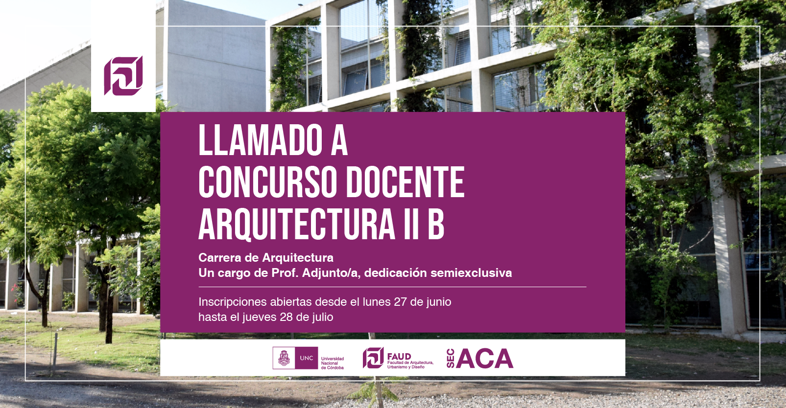 Secretaría Académica informa que está abierto el llamado a concurso docente para la cátedra Arquitectura II B