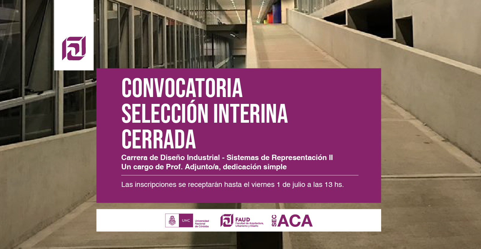 Secretaría Académica informa que se encuentra disponible la selección interina cerrada para la cátedra de Sistemas de Representación II de la carrera Diseño Industrial.