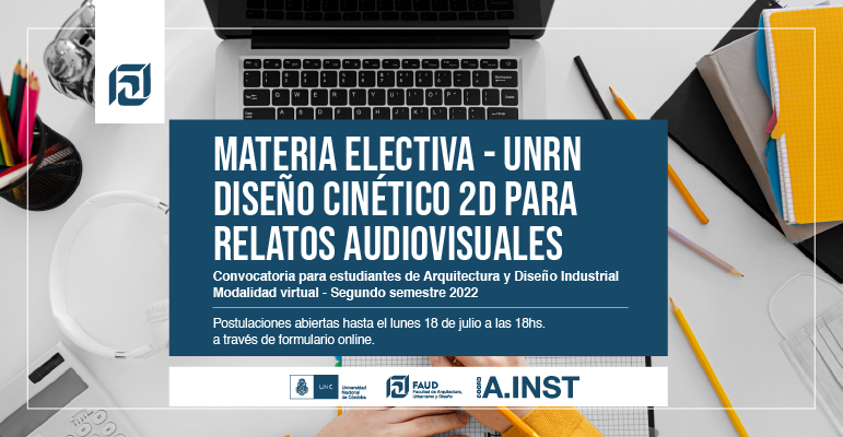 La Coordinación de Asuntos Institucionales informa que se encuentra abierta la convocatoria a estudiantes de Arquitectura para cursar la materia electiva "Diseño cinético 2D para relatos audiovisuales" en la Universidad Nacional de Río Negro.