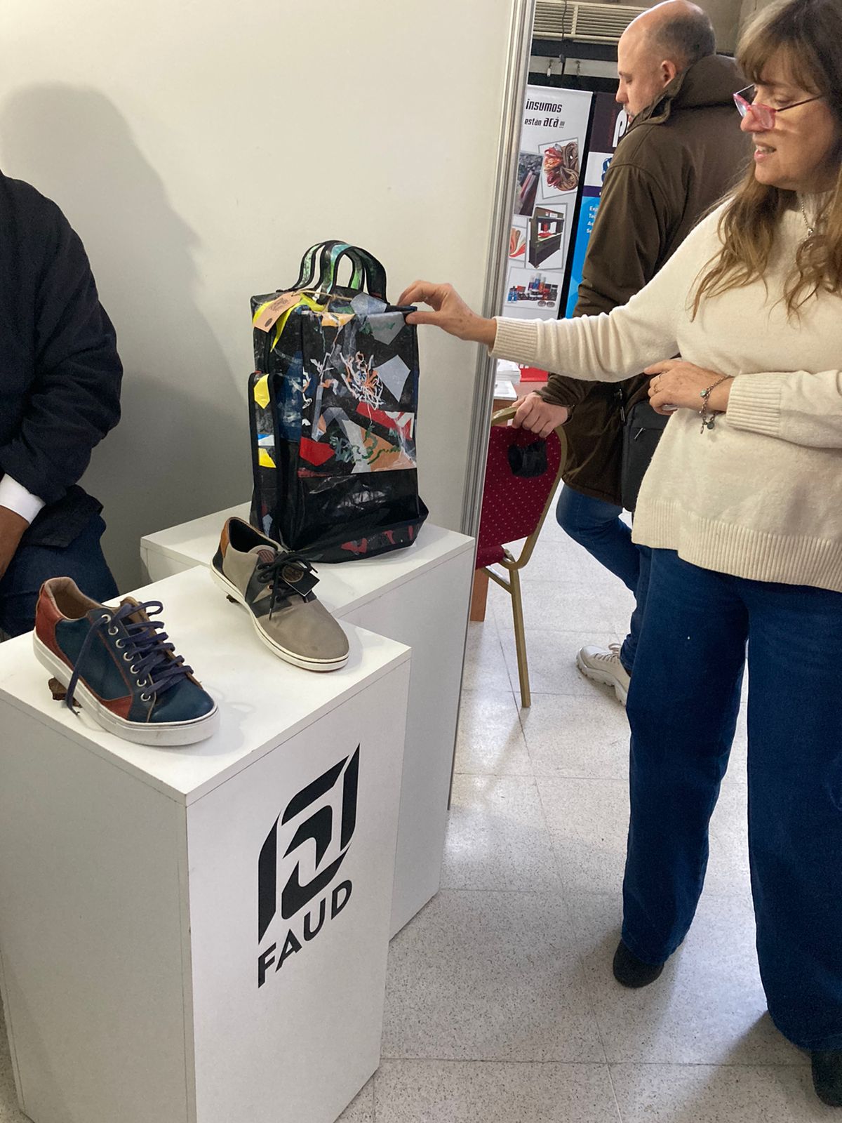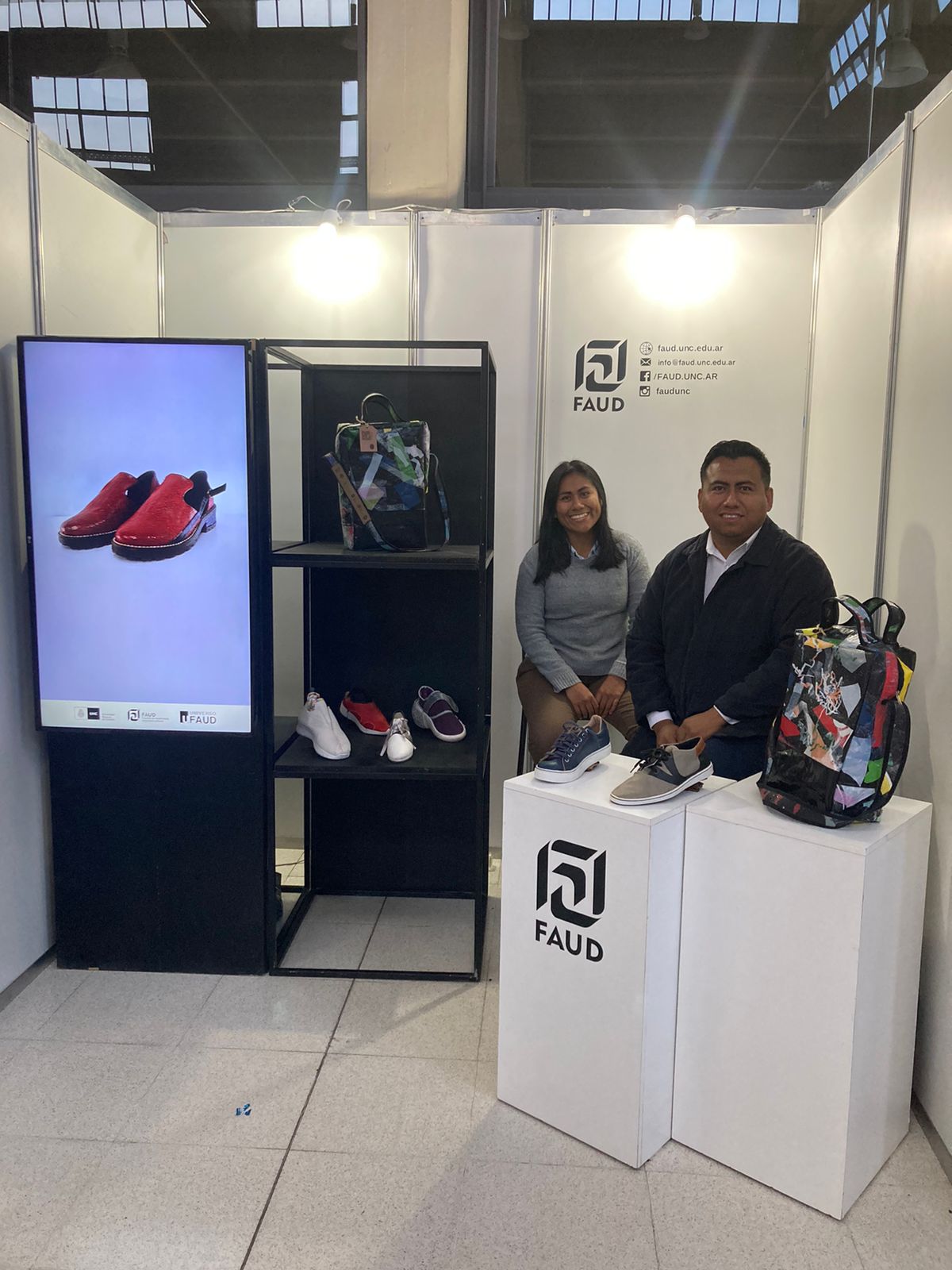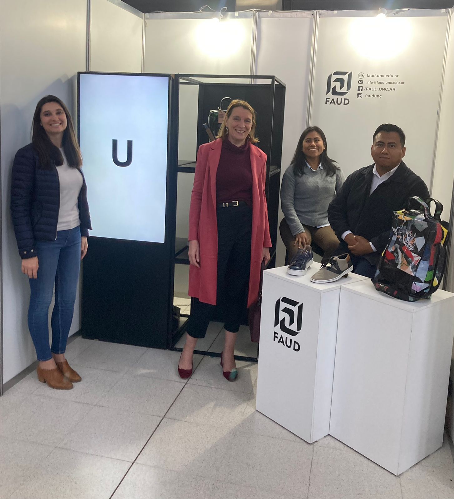 En la exposición estuvieron presentes la decana de la FAUD Mariela Marchisio, el vicedecano Guillermo Olguín, la secretaria de Extensión Silvina Mocci, el coordinador estudiantil de Cultura y Recreación, Emiliano Depetris y autoridades de la Cámara de la Industria del Calzado de Córdoba.