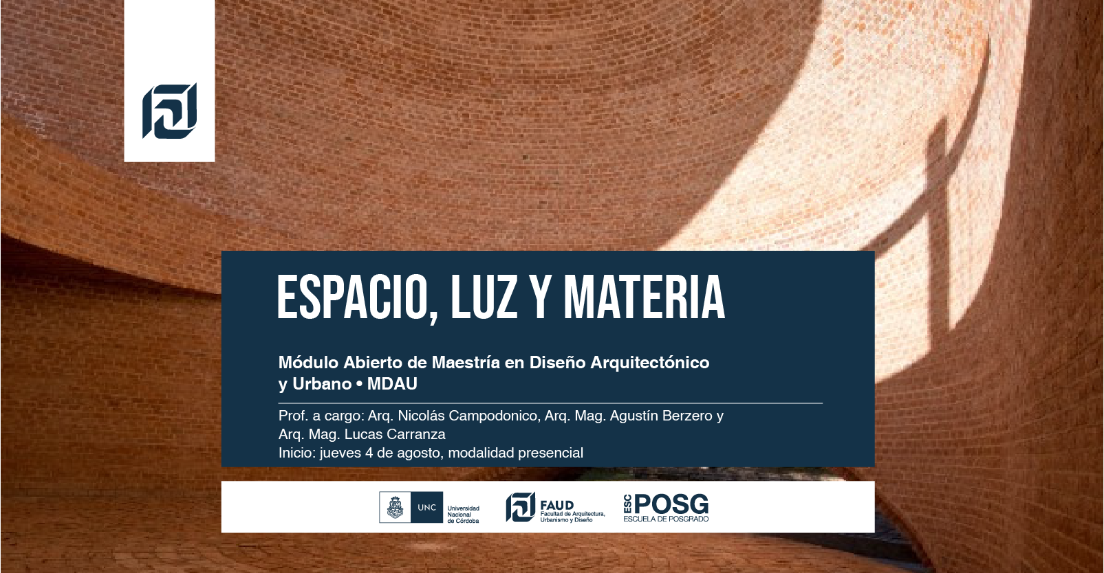 La Escuela de Posgrado FAUD invita a participar del módulo abierto "Espacio, Luz y Materia", de la Maestría en Diseño Arquitectónico y Urbano MDAU.