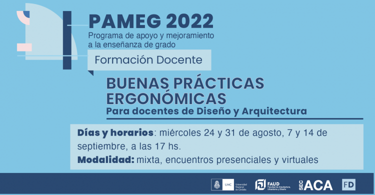 La Secretaría Académica informa que a partir del lunes 1 de agosto abren las inscripciones para el curso "Buenas Prácticas Ergonómicas para docentes", en el marco del Programa de Formación Docente - PAMEG.