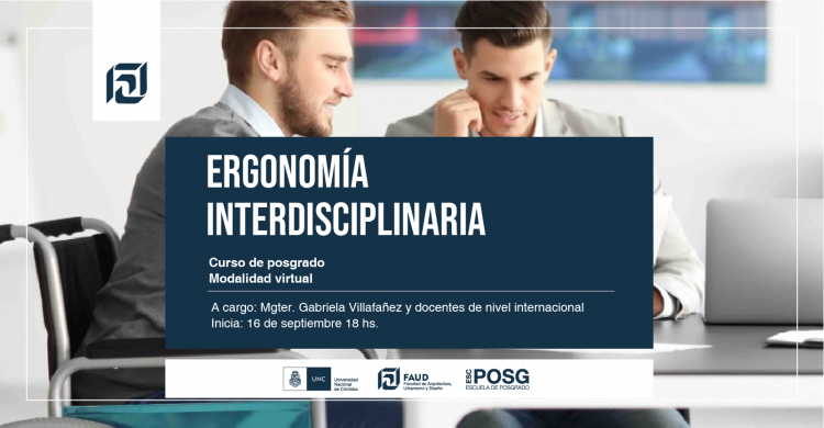La Escuela de Posgrado invita al curso "Ergonomía interdisciplinaria", dictado por la Mgter. Gabriela Villafañez junto a docentes y conferencistas de nivel internacional.