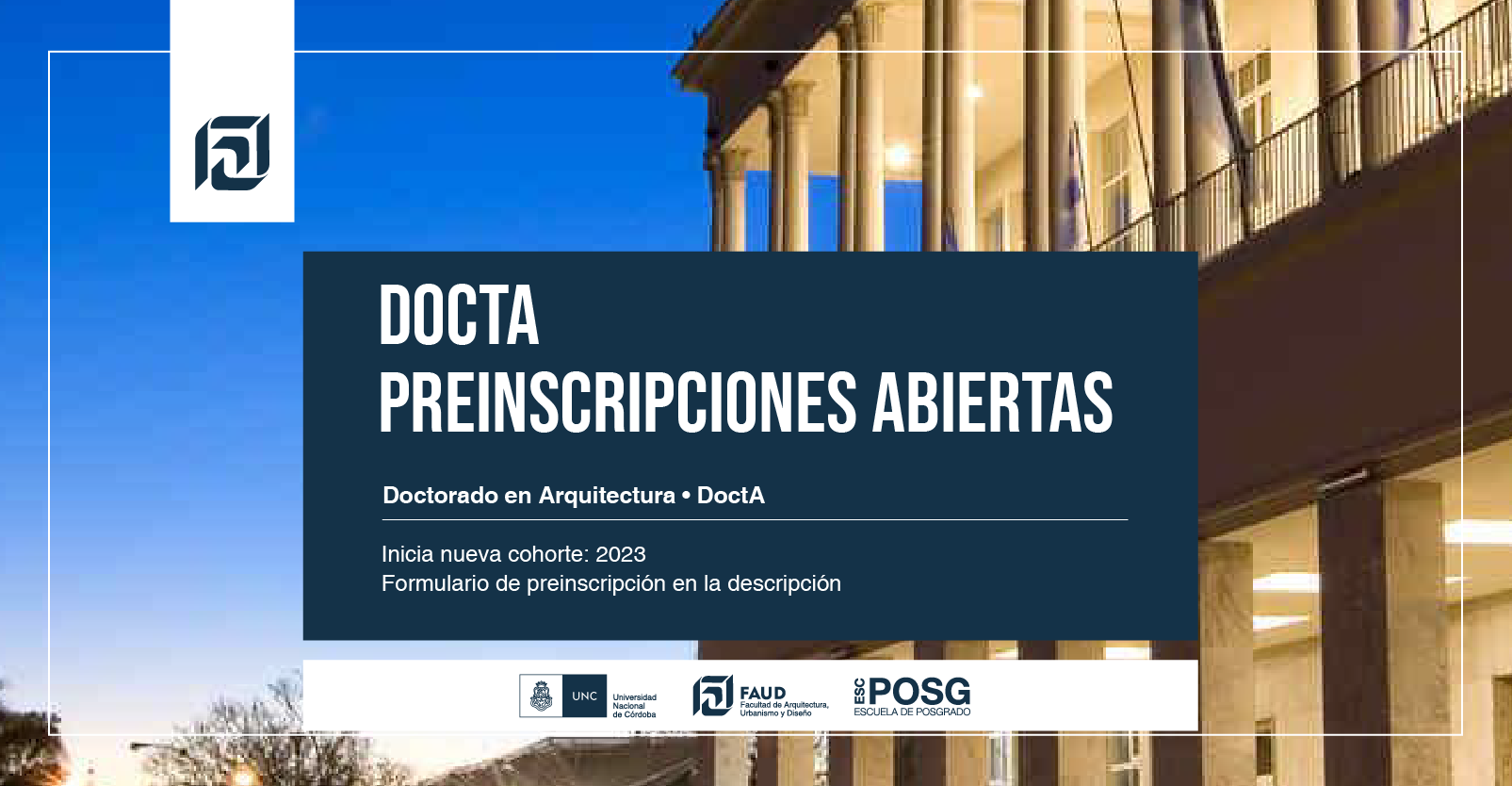 La Escuela de Posgrado informa que ya se encuentran abiertas las inscripciones para la nueva cohorte 2023 del doctorado en Arquitectura, DoctA.