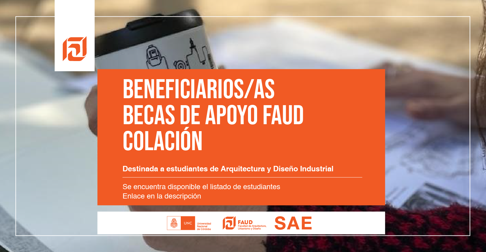 La Secretaría de Asuntos Estudiantiles y la Coordinación Estudiantil de Ingreso y Permanencia informan que se encuentra disponible la lista de beneficiarios/as para la Beca de Apoyo FAUD 2022 - Colación, 3ra convocatoria.
