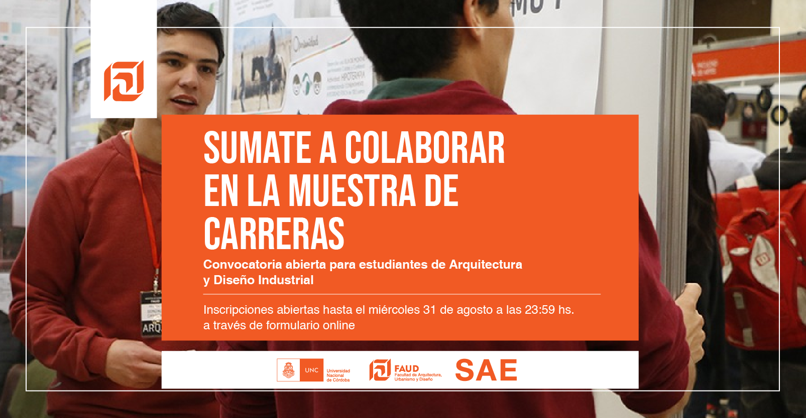 La Secretaría de Asuntos Estudiantiles invita a estudiantes a participar en el stand de la FAUD en la Muestra de Carreras 2022 que se desarrollará desde el 6 hasta el 9 de septiembre en el Pabellón Argentina.
