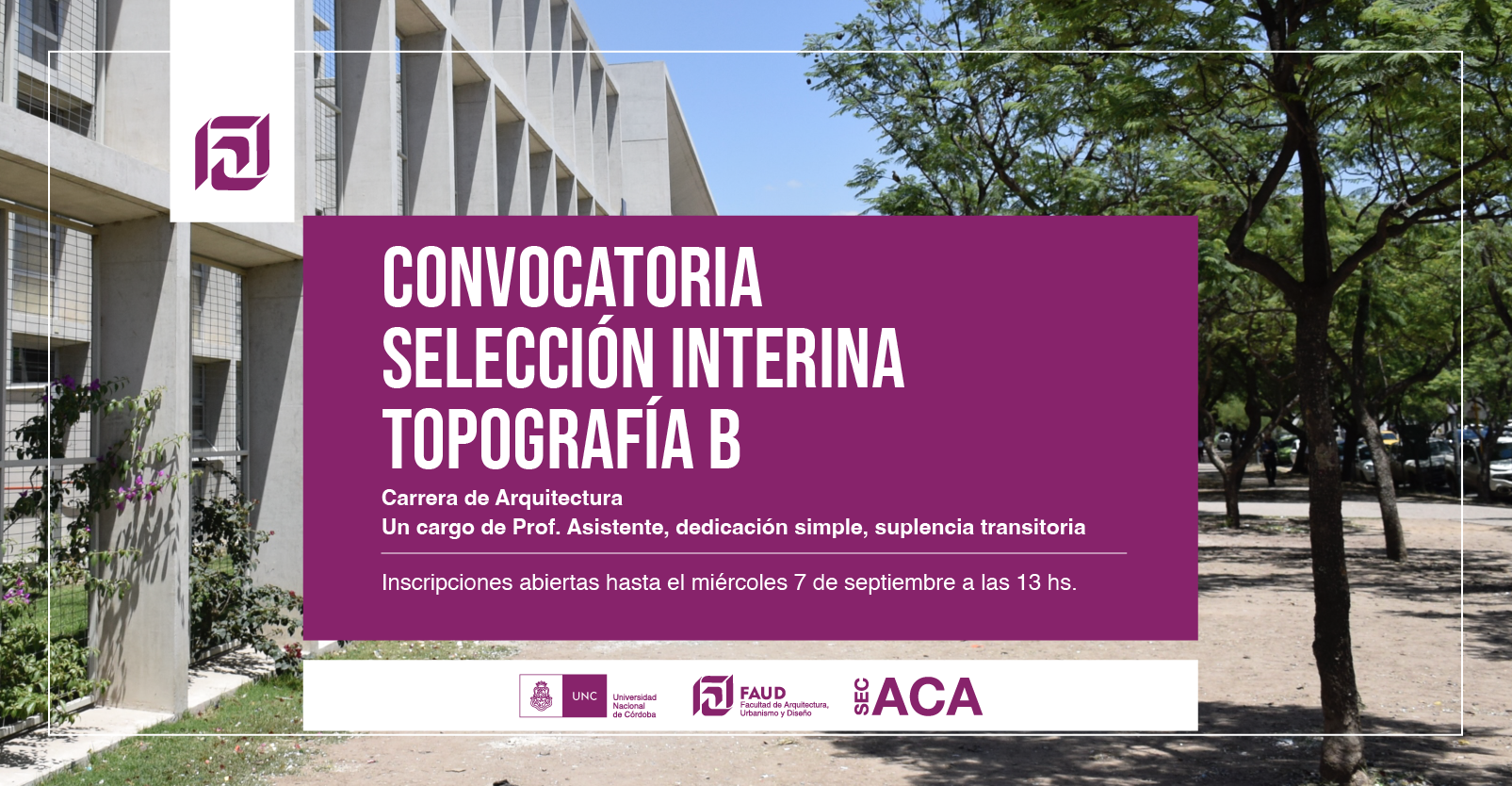 Secretaría Académica informa que se encuentra abierto el llamado a selección interina para el cargo de Prof. Asistente dedicación simple, suplencia transitoria, para la cátedra Topografía B.