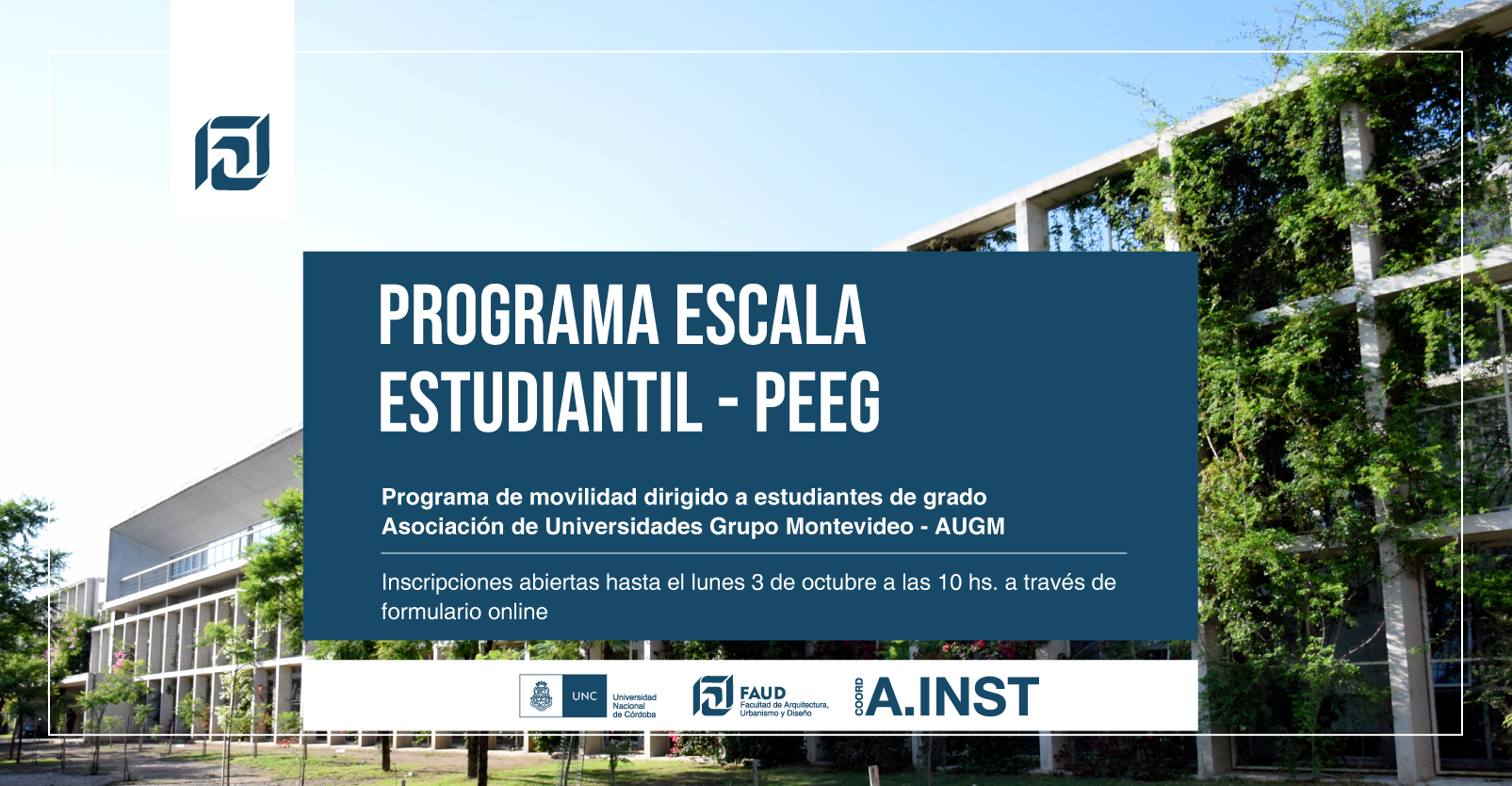 La Coordinación de Asuntos Institucionales informa que se encuentra abierta la convocatoria del Programa de Intercambio ESCALA Estudiantil - PEEG, destinada a estudiantes de grado de la FAUD.