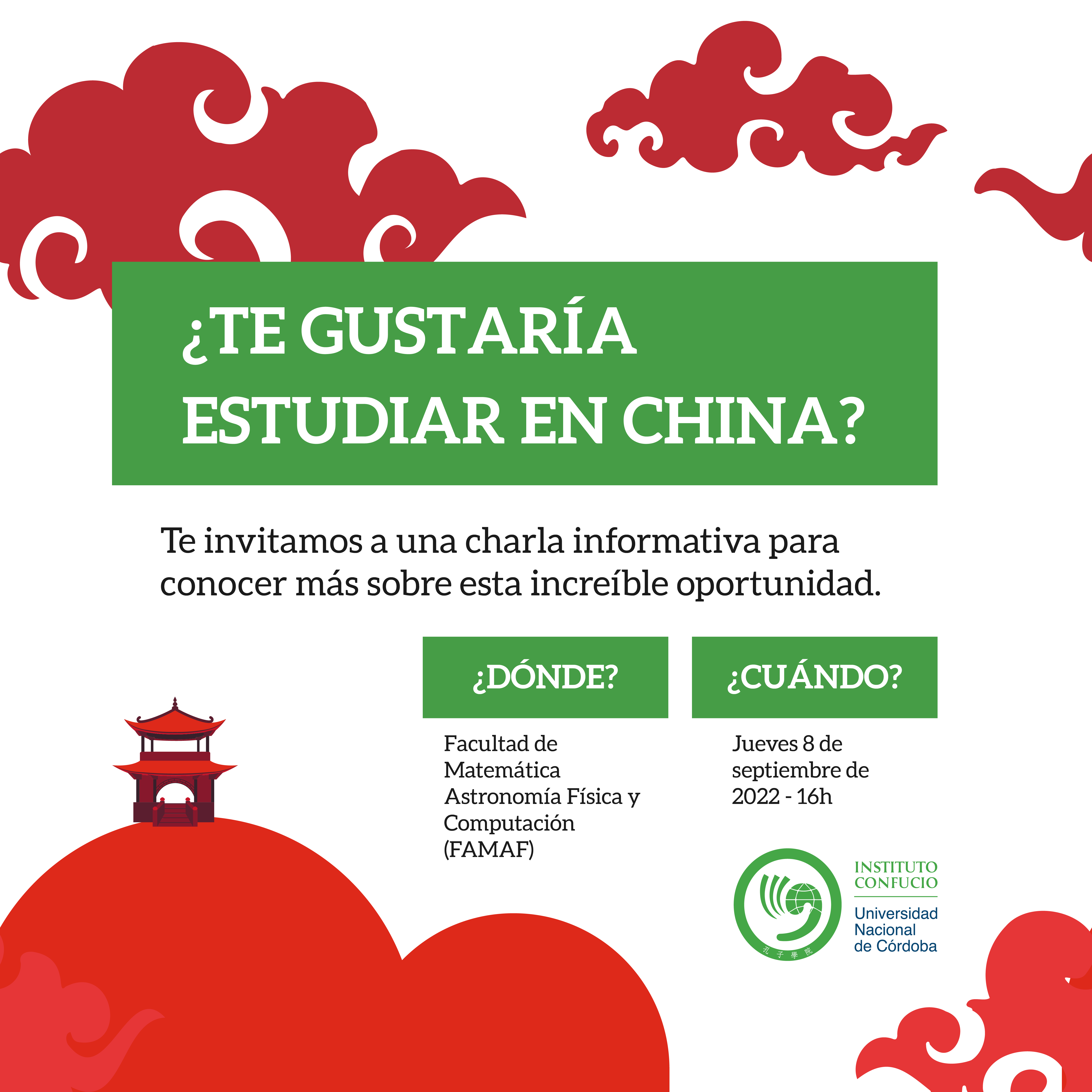 El Instituto Confucio de la UNC, invita a estudiantes de la comunidad FAUD a participar de la charla informativa sobre oportunidades para estudiar en China