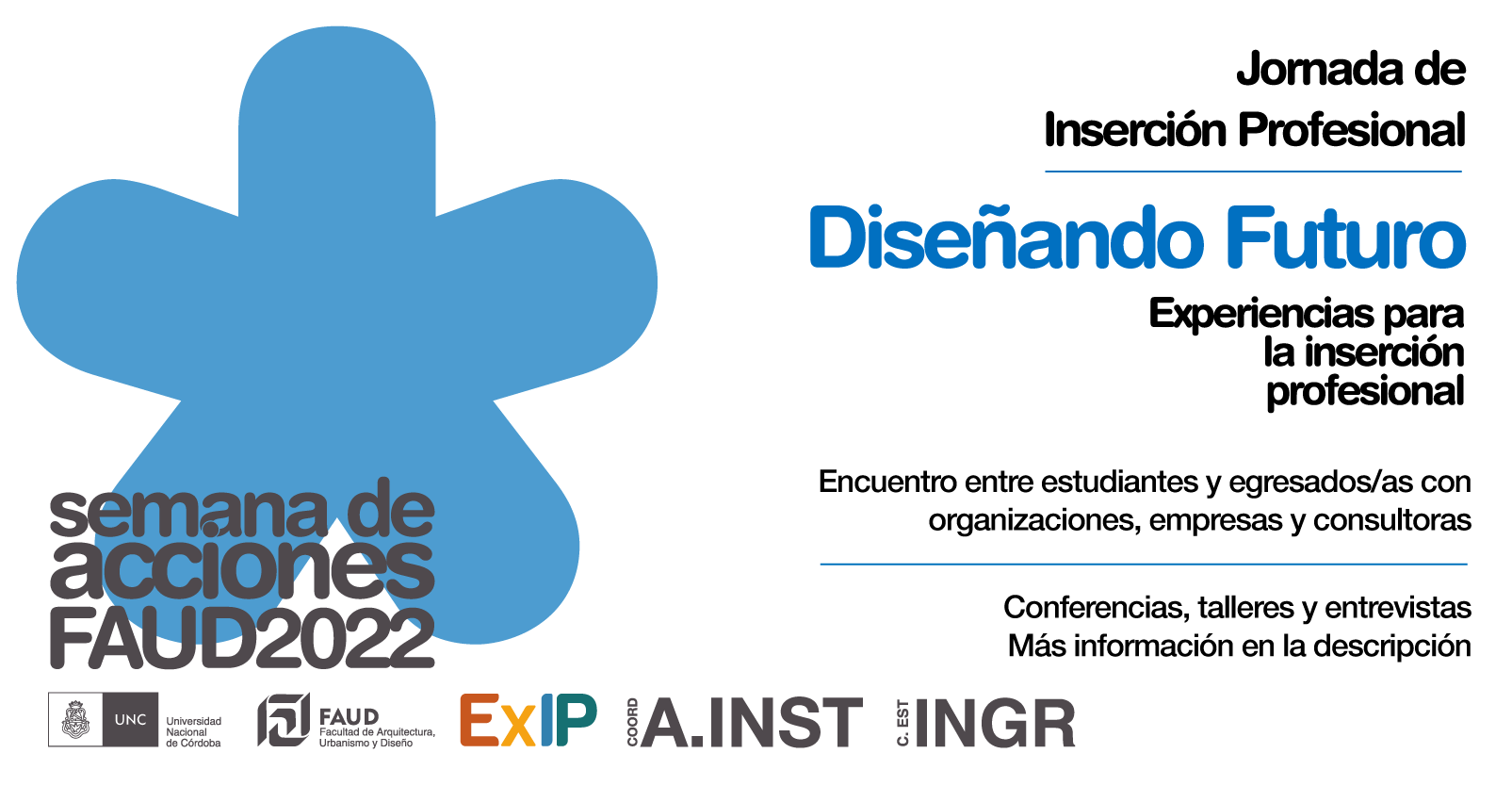 La Coordinación de Asuntos Institucionales y la Coordinación Estudiantil de Ingreso y Permanencia invitan a la jornada "Experiencias para la Inserción Profesional - Diseñando Futuro", en el marco de la Semana de Acciones.