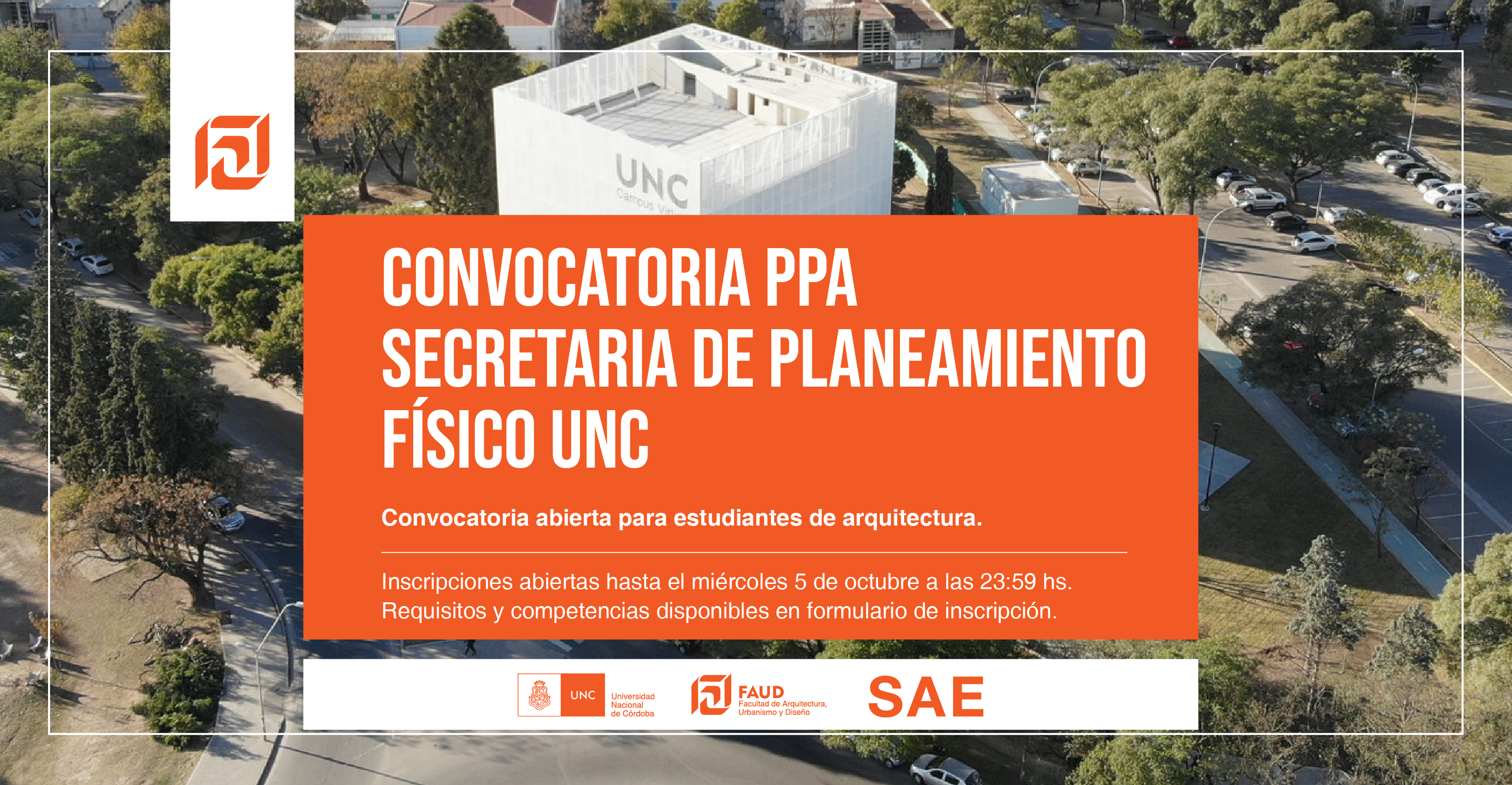 La Secretaría de Asuntos Estudiantiles informa que se encuentra abierta la convocatoria para realizar la Práctica Profesional Asistida en la Subsecretaría de Planeamiento Físico de la UNC, en colaboración con la Secretaría de Innovación y Vinculación Tecnológica.