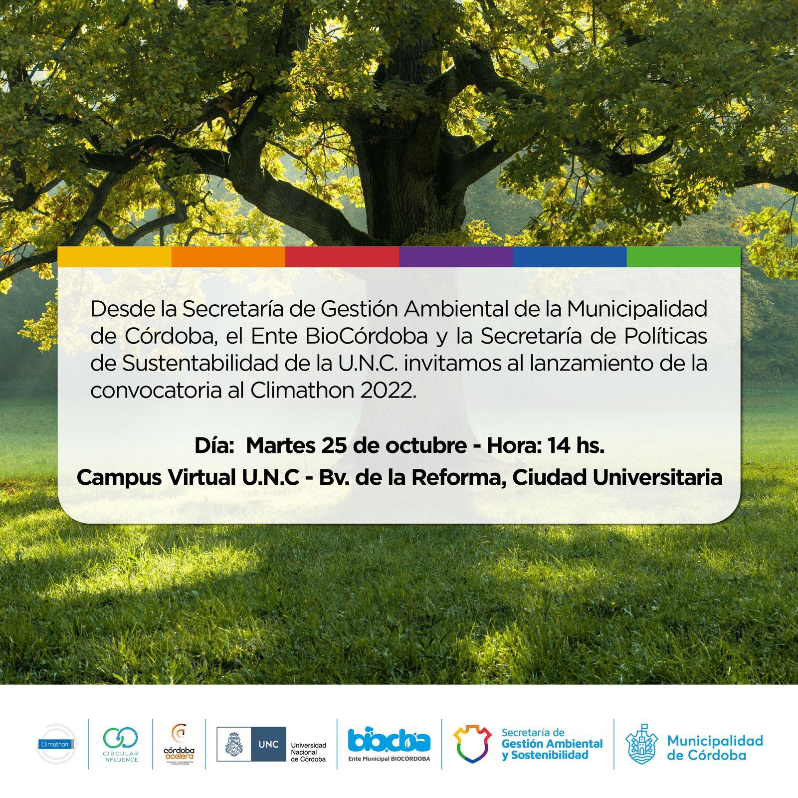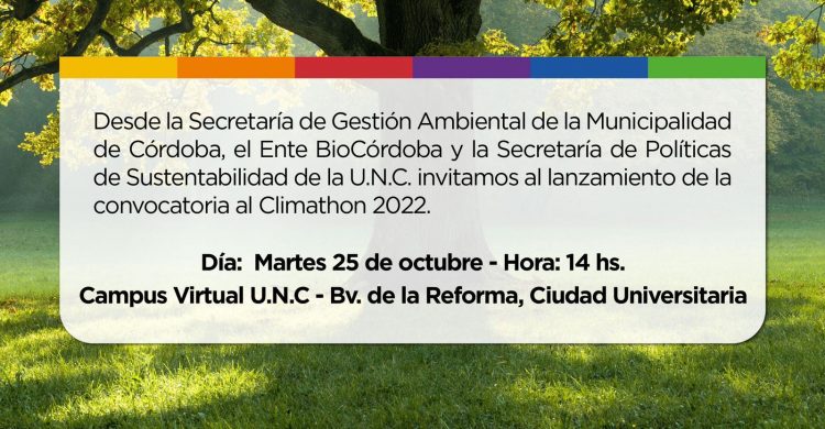 La Secretaría de Gestión Ambiental de la Municipalidad de Córdoba, el Ente BioCórdoba y la Secretaría de Políticas de Sustentabilidad de la UNC invitan al lanzamiento de la convocatoria al Climathon 2022.