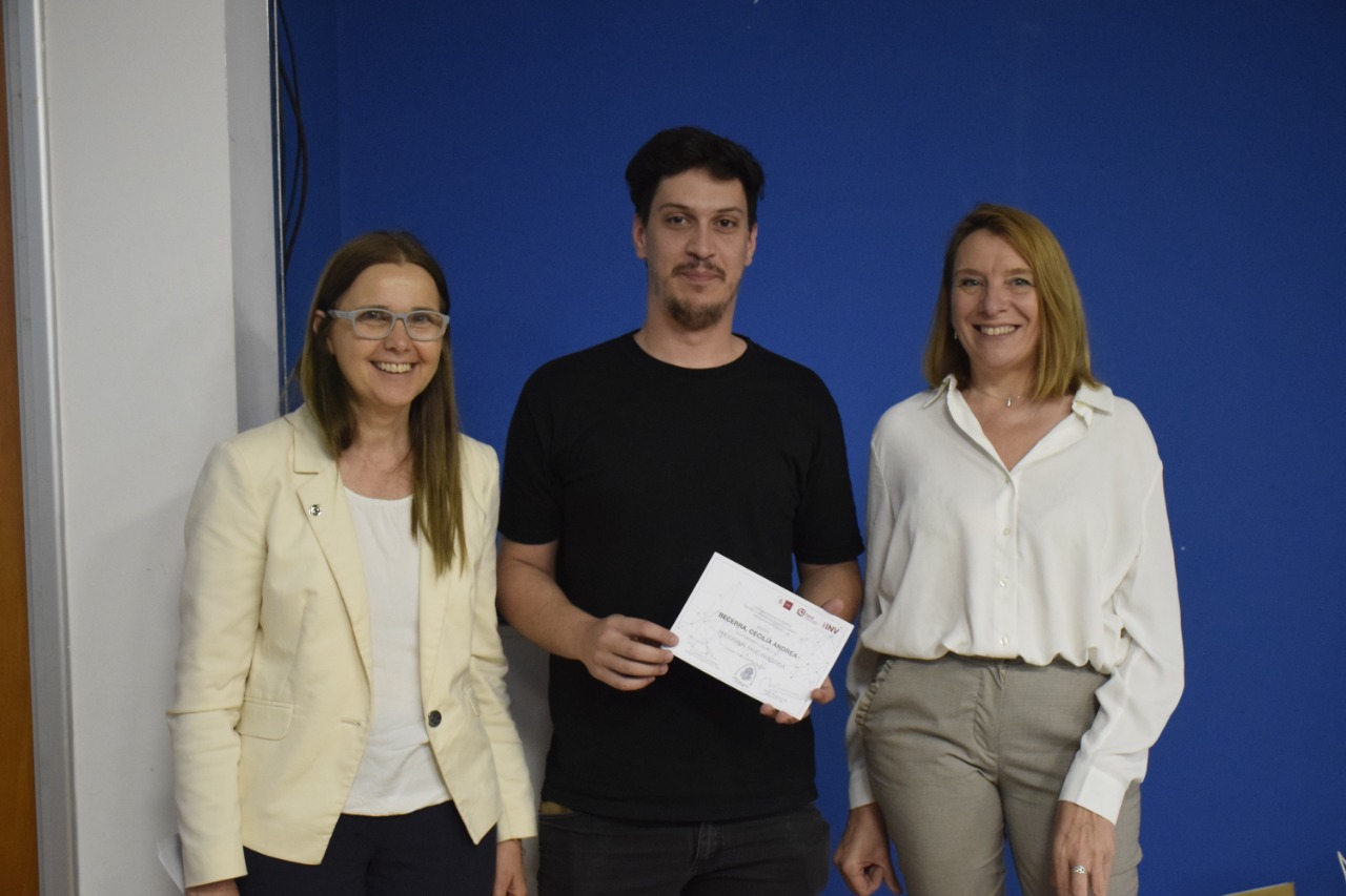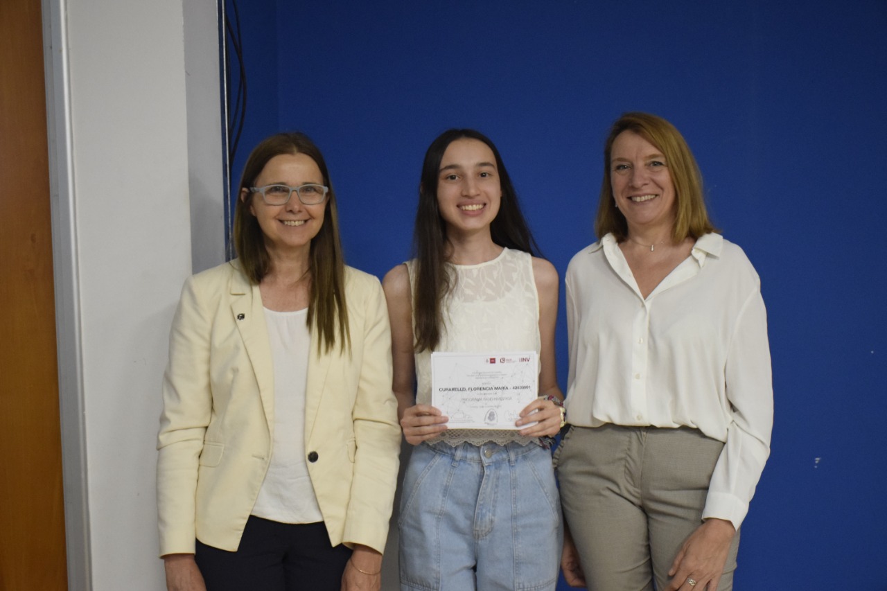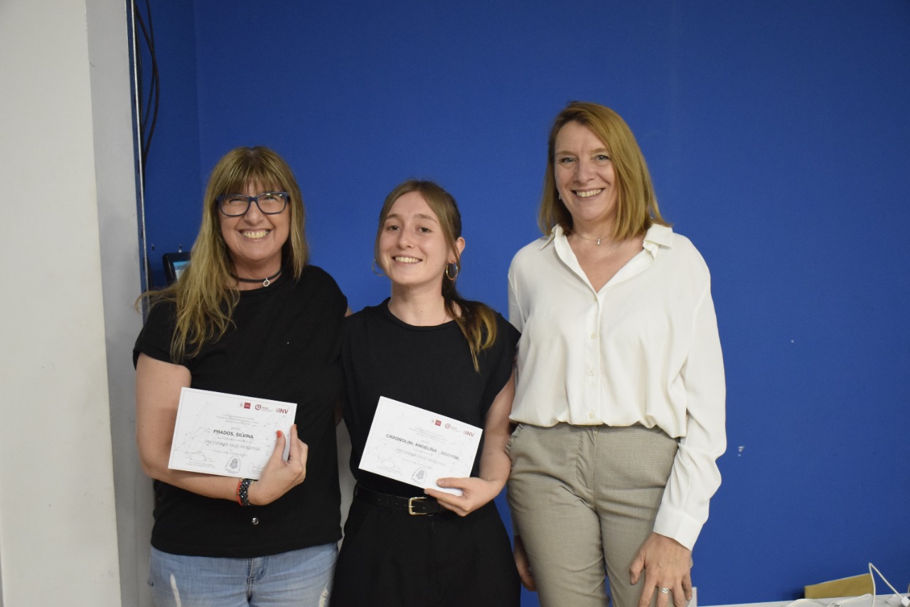 La decana Mariela Marchisio, junto a la Secretaria de Investigación Monica Martínez participaron de la entrega de premios, junto a directores, codirectores y estudiantes.