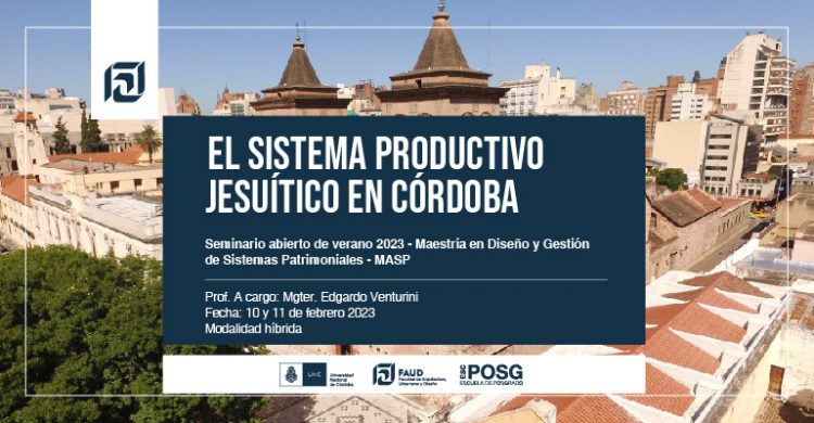 La Escuela de Posgrado informa que se encuentran disponibles las inscripciones para el seminario abiertos de verano, "Paisajes Culturales I: El sistema productivo jesuítico en Córdoba", de la Maestría en Diseño y Gestión en Sistemas Patrimoniales
