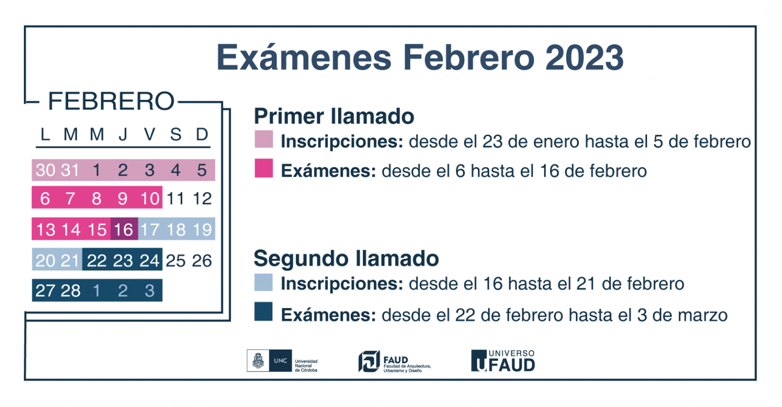 Secretaría Académica informa las fechas de inscripciones, horarios y lugares de los exámenes del turno de febrero 2023, de las carreras de Arquitectura y Diseño Industrial.