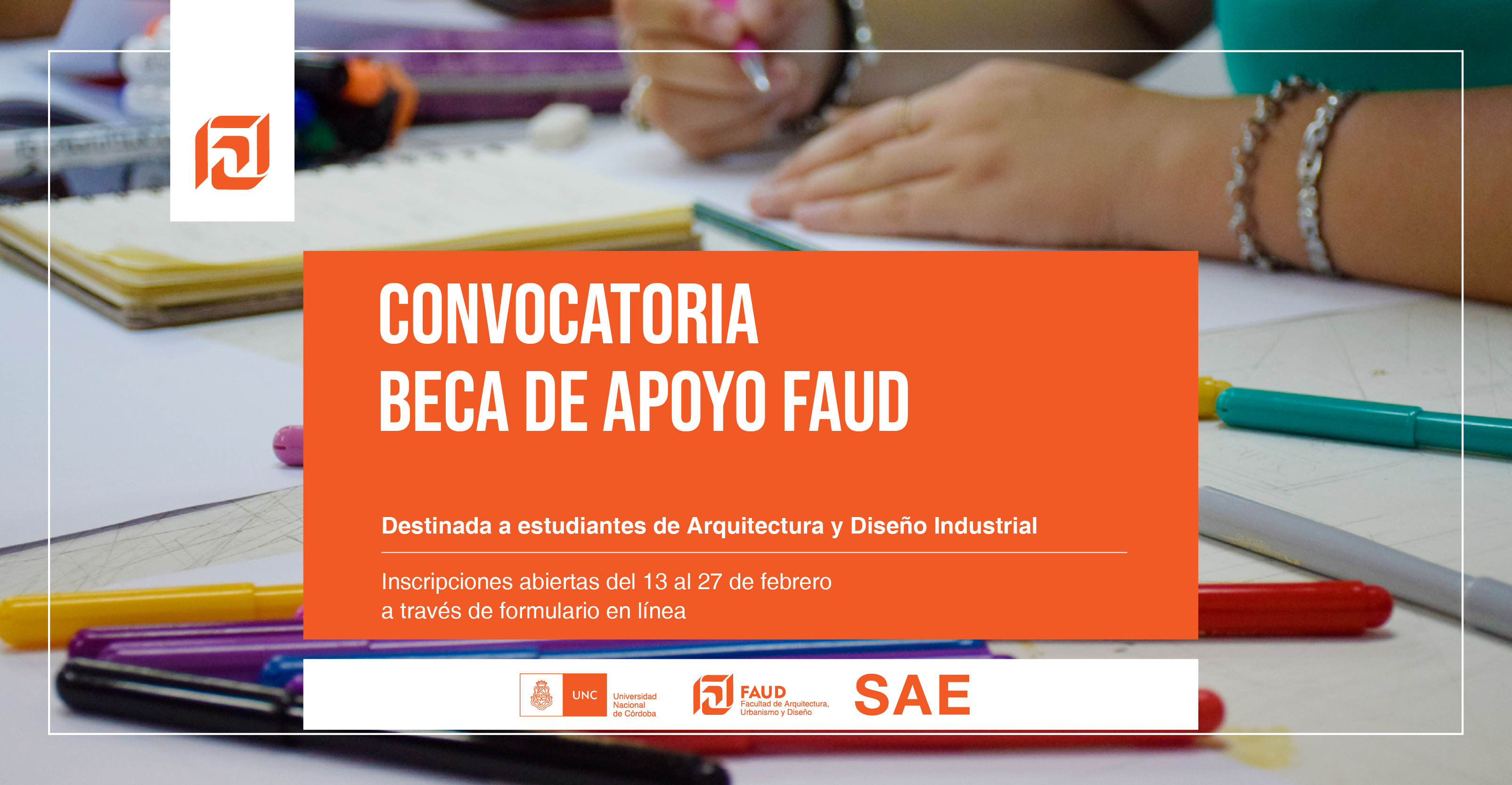 La Secretaría de Asuntos Estudiantiles informa que se encuentran abiertas las inscripciones para acceder a la Beca de Apoyo FAUD 2023