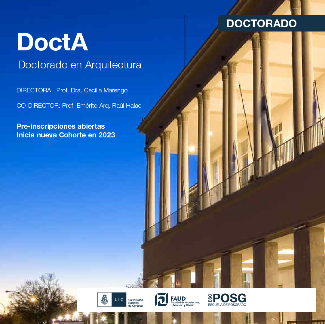 ◾ DoctA - Doctorado en Arquitectura/ inicio: marzo 2023 / Más información.