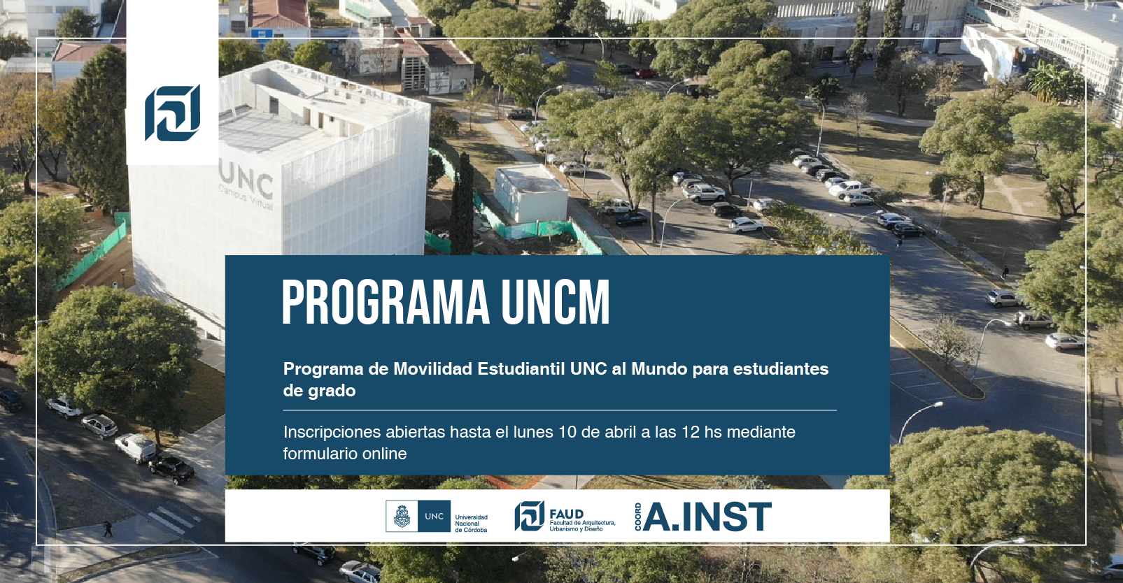La Coordinación de Asuntos Institucionales informa que se encuentra abierta la convocatoria del Programa de Movilidad Estudiantil UNC al Mundo de la Universidad Nacional de Córdoba, destinada a estudiantes de grado de la FAUD.