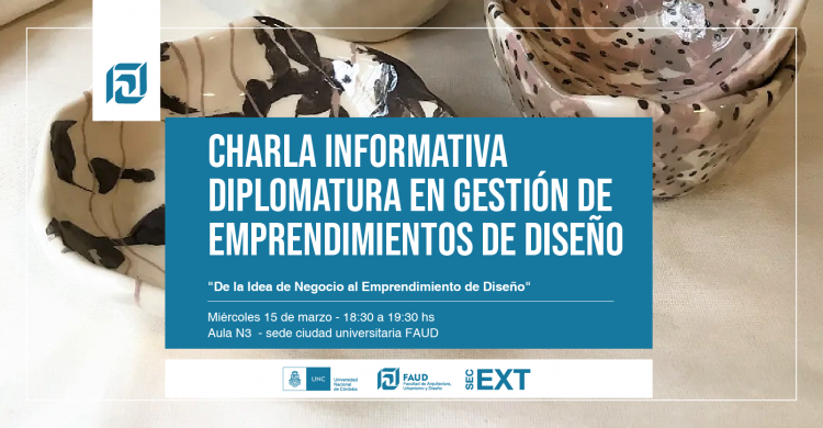 Secretaria de Extensión invita a la charla informativa sobre la Diplomatura en Gestión de Emprendimientos de Diseño, a iniciar en el mes de abril, a cargo de su directora y docentes.