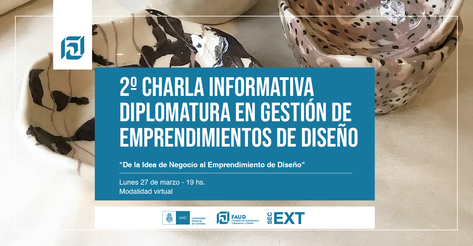 La Secretaria de Extensión informa que el lunes 27 de marzo a las 19 hs., se realizara la 2º charla informativa sobre la Diplomatura en Gestión de Emprendimientos de Diseño.