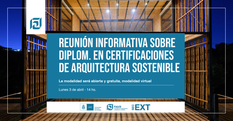 Secretaria de Extensión informa que el lunes 3 de abril, se realizará una reunión informativa sobre la Diplomatura en Certificaciones de Arquitectura Sostenible