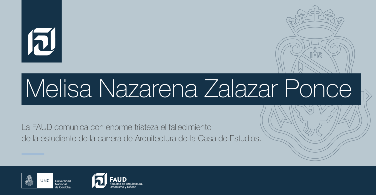 La Facultad de Arquitectura, Urbanismo y Diseño de la UNC lamenta profundamente el fallecimiento de Melisa Nazarena Zalazar Ponce, estudiante de la carrera de Arquitectura, quien estaba cursando nivel I.