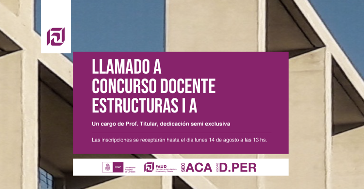 Secretaría Académica y la Coordinación de Desarrollo del Personal informan el llamado a concurso docente para la cátedra Estructuras I A, de la carrera de Arquitectura.