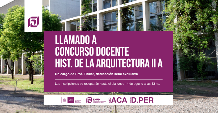 Secretaría Académica y la Coordinación de Desarrollo del Personal informan el llamado a concurso docente para la cátedra Historia de la Arquitectura II A, de la carrera de Arquitectura.