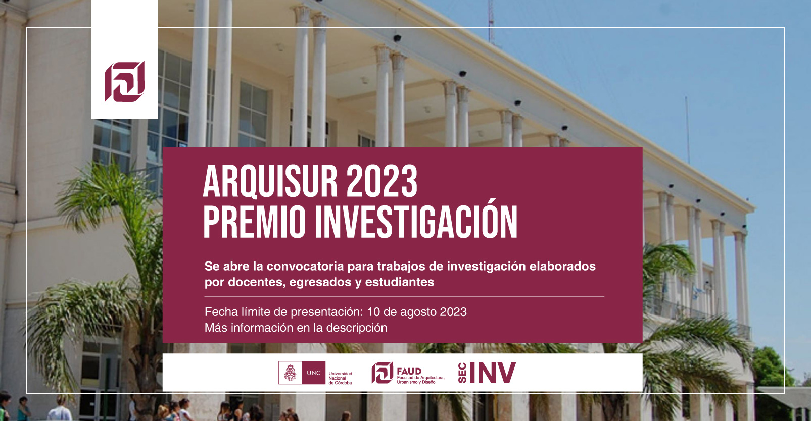 La Secretaria de Investigación comunica que se encuentra abierta la convocatoria para ARQUISUR 2023 - Premio Investigación